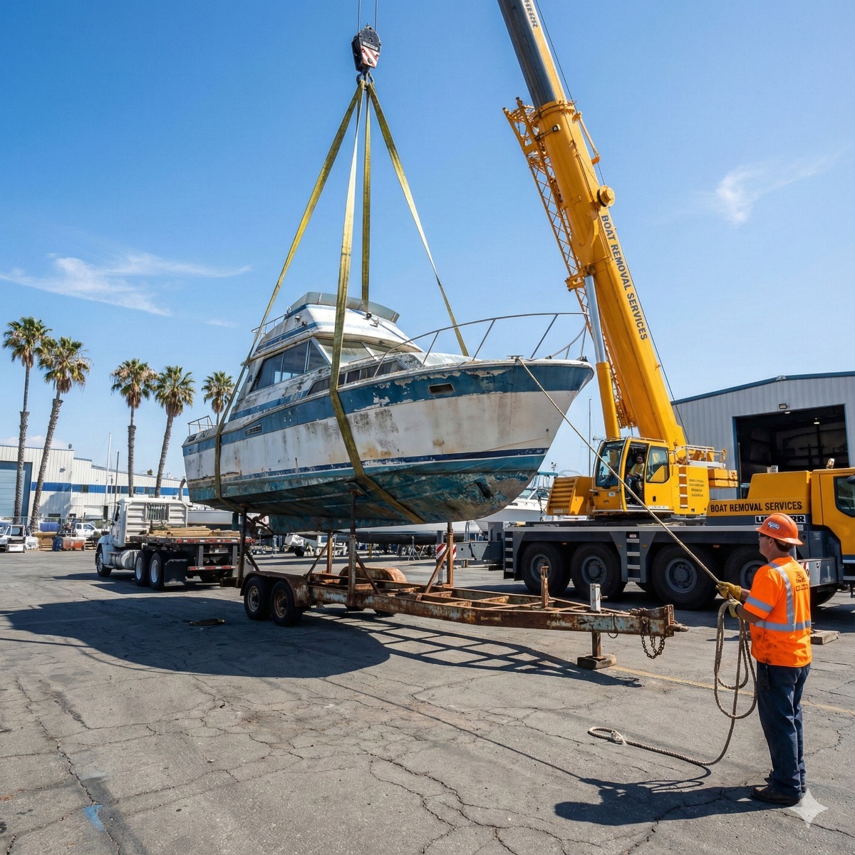 A derelict boat is a liability, not an asset. Whether it's sitting in your driveway or racking up fees at a Long Beach marina, we handle the complete disposal process—logistics, crane lifts, and legal paperwork—so you can walk away clean.