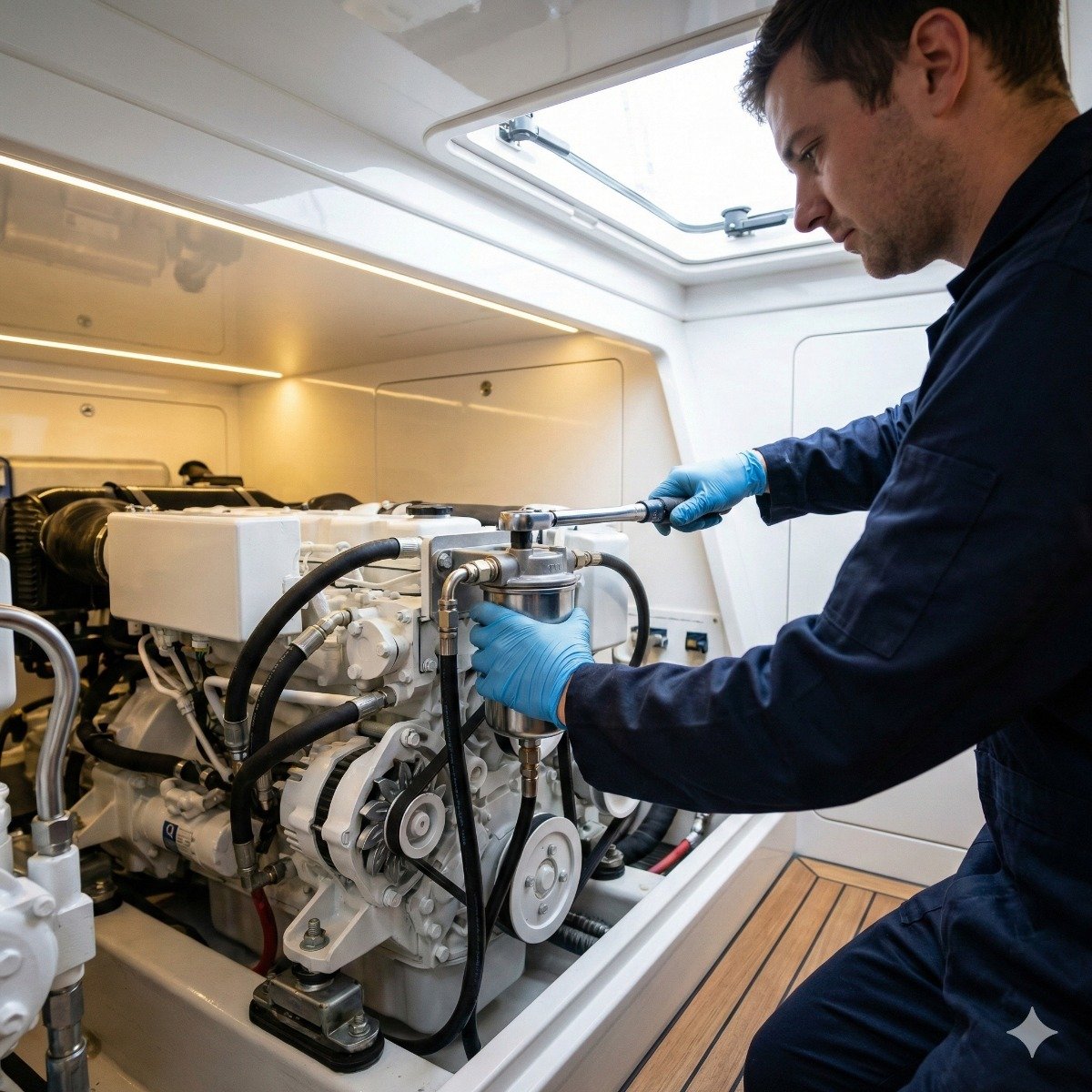 Modern marine engines demand pristine fuel. We install high-capacity Racor and premium fuel-water separators to protect your injectors from ethanol phase separation, algae sludge, and catastrophic water damage.
