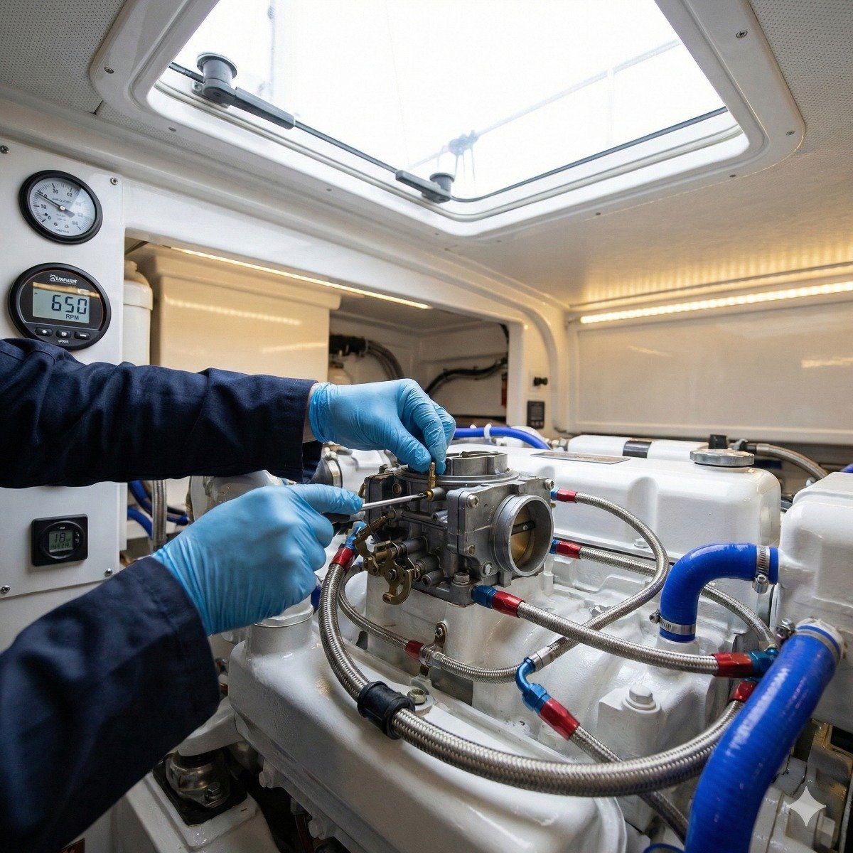 Eliminate rough idling, stalling at the dock, and harsh gear engagements. We precisely calibrate your carburetor's idle speed and air/fuel mixture screws using sensitive vacuum gauges for a flawless, steady RPM.