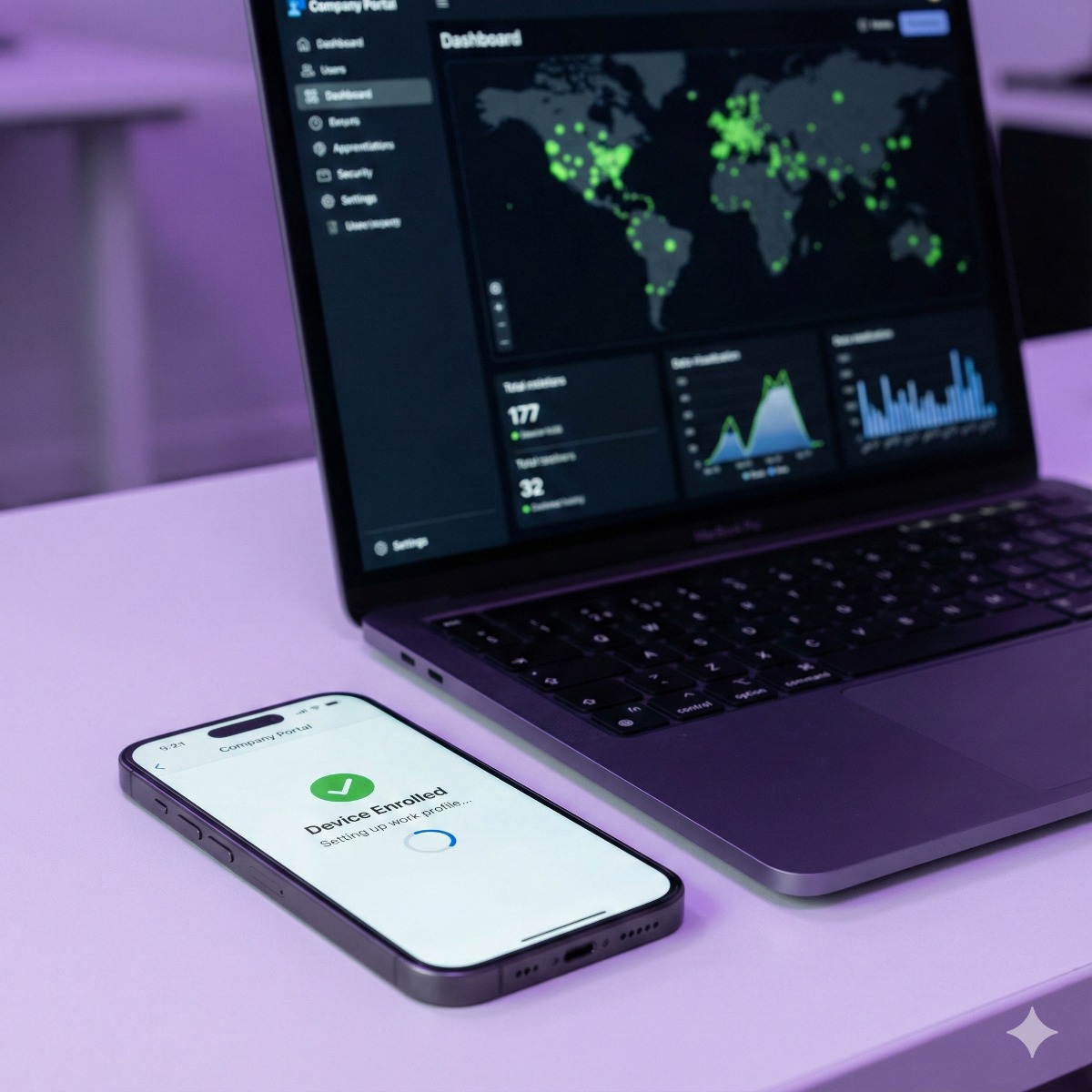 Users download the "Company Portal" app. It guides them through enrollment in 2 minutes. For corporate devices, enrollment happens automatically out of the box.
