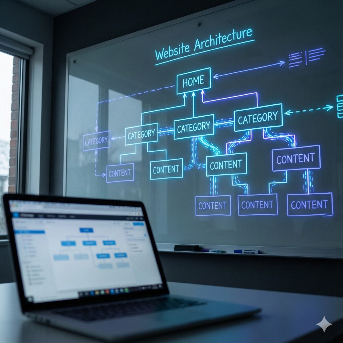 We design a "Pyramid" structure. Homepage at the top, Category Pages in the middle, and Product/Blog pages at the bottom. This is the gold standard for SEO.